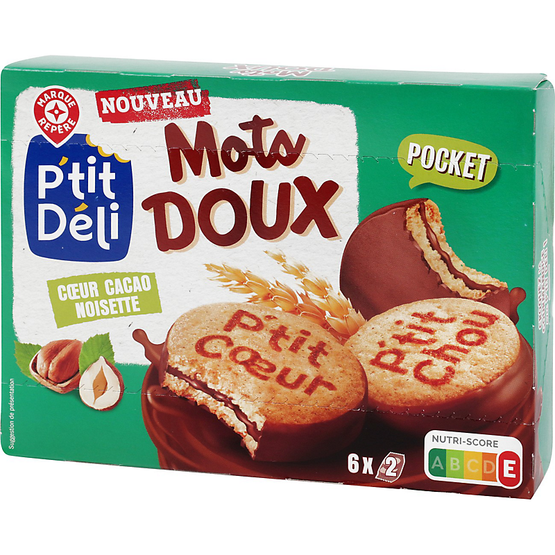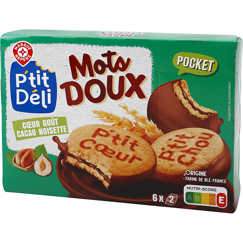 Biscuits mots doux goût chocolat au lait et cacao noisette - 180 g - P'TIT DELI