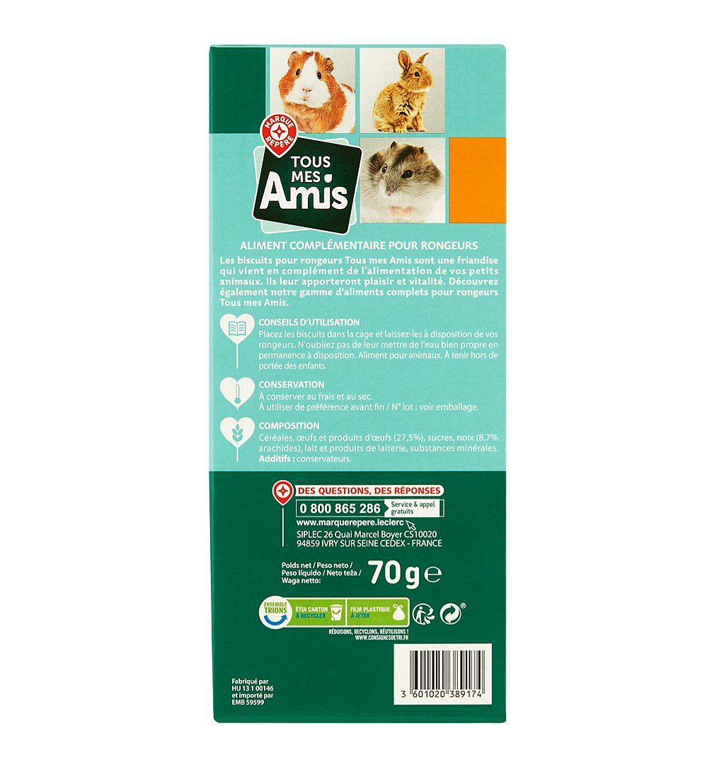 | Libellé | Biscuits tous rongeurs x6 - Marque Repère - Tous mes amis |