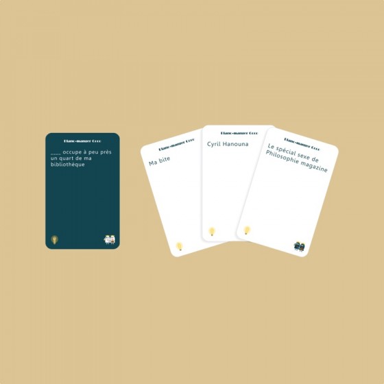 Le jeu contient 40 cartes "questions", 160 cartes "réponses" et la règle du jeu