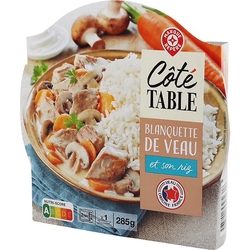 Viande de veau en sauce à la crème fraîche accompagnée de riz, aromatisée COTE TABLE