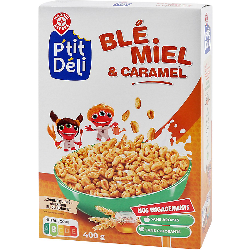 Ingrédients : Blé dur soufflé 65,2 %, sucre 30,3 %, miel 3 %, sirop de glucose, huile de tournesol, sel.
