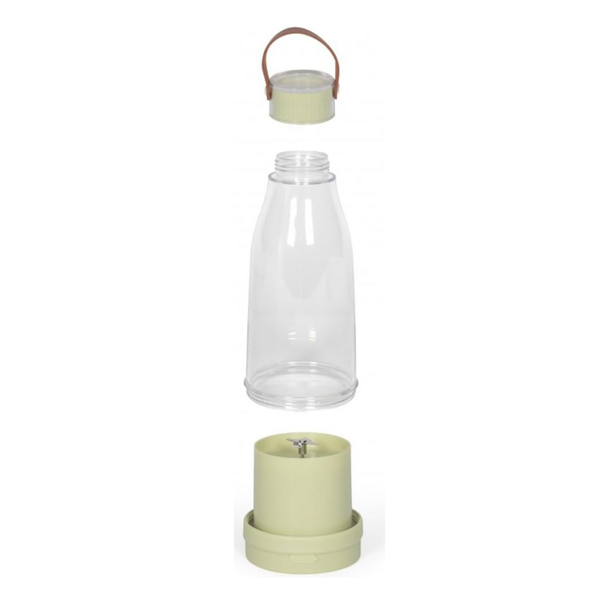 Blender nomade avec sa poignée de transport et son bouchon, idéal pour préparer jus ou smoothie à emporter. Facile d'utilisation, il suffit de double cliquer pour démarrer le mixage et cliquer un fois pour l'arrêter. Sa batterie 1500 mAh se recharge via un câble USB type C.
