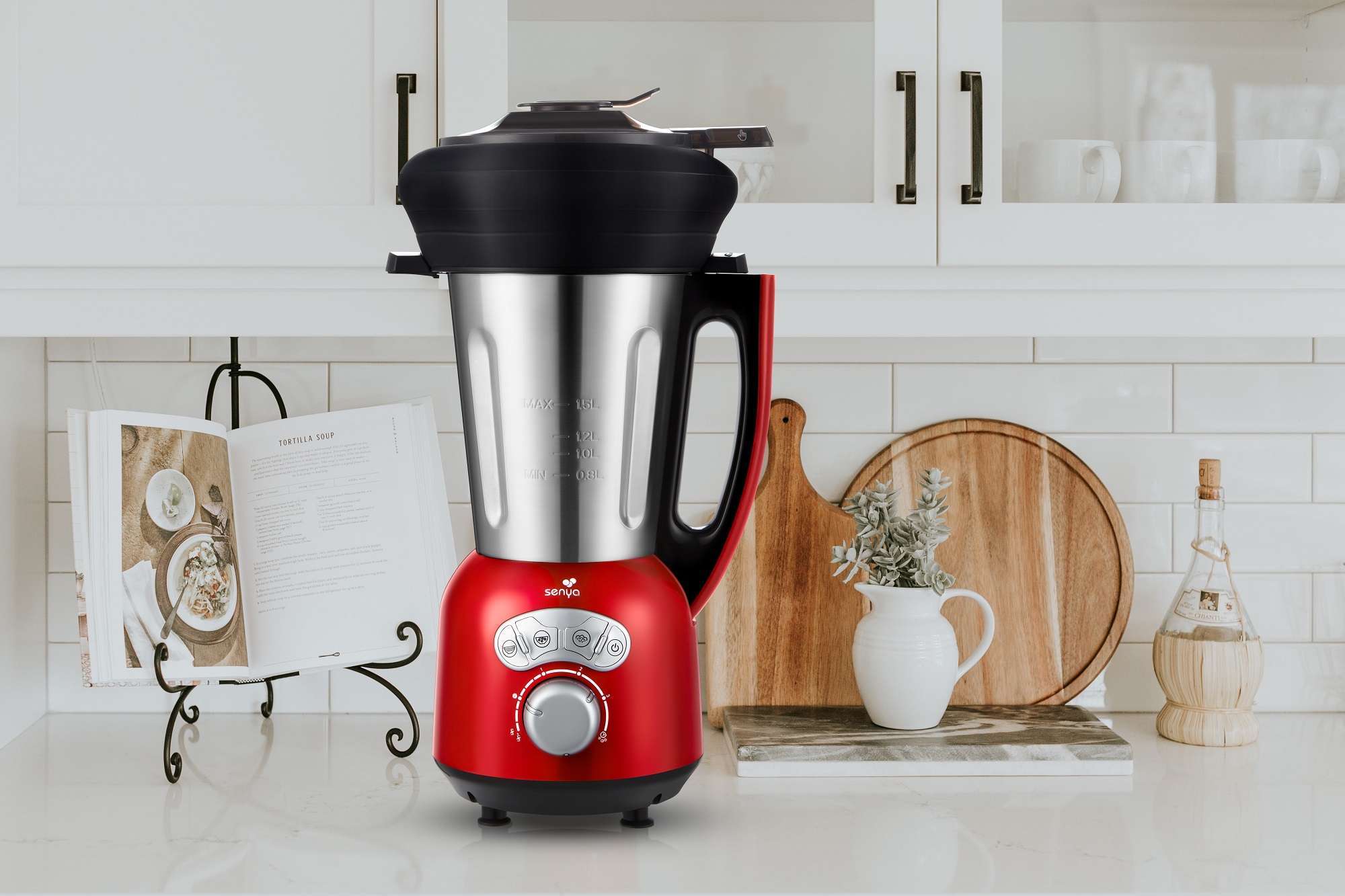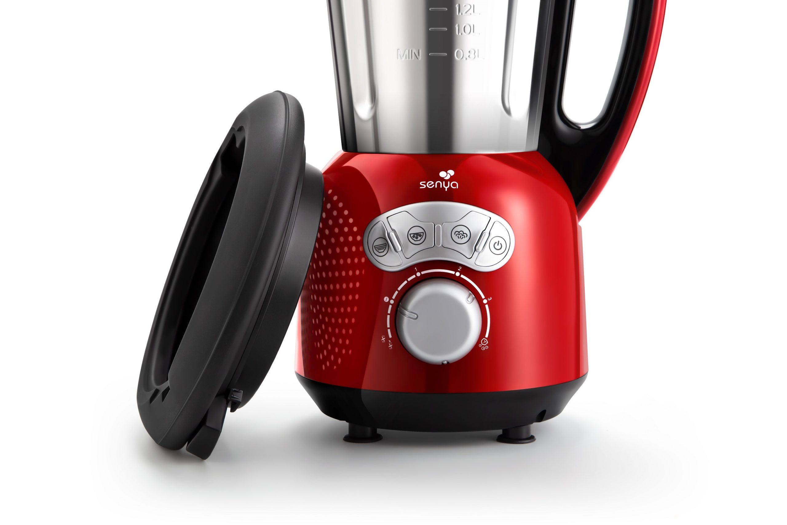 Le blender mixeur chauffant Cook &Ice de Senya, d'une capacité de 1,5 litres, est parfait pour réaliser des soupes (chaudes ou fraîches), potages et autres préparations en 30 minutes maximum. Le bol est conçu en acier inoxydable avec une graduation intérieure et extérieure.