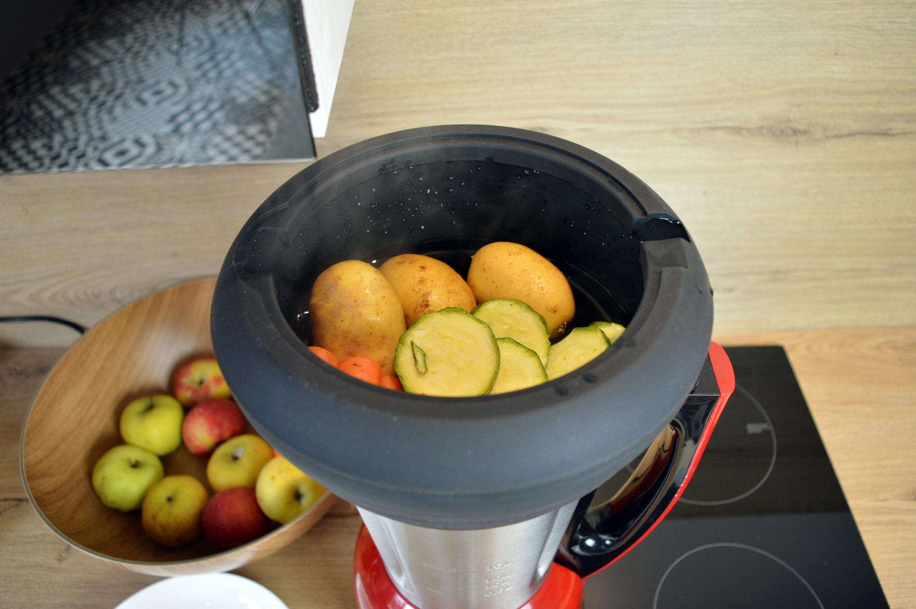 Blender chauffant Cook&Ice rouge et son panier vapeur en silicone