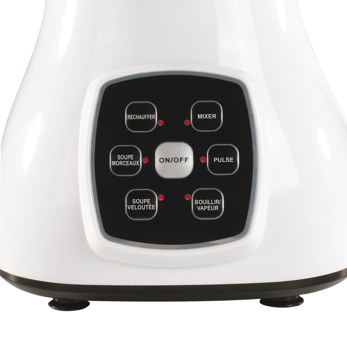 INTUITIF - Le blender chauffant dispose de 6 fonctions prédéfinies : mixer, réchauffer, soupe moulinée, soupe avec morceaux, cuisson vapeur et fonction pulse. Le blender est également fourni avec un panier à œuf pour faire cuire des œufs durs facilement.