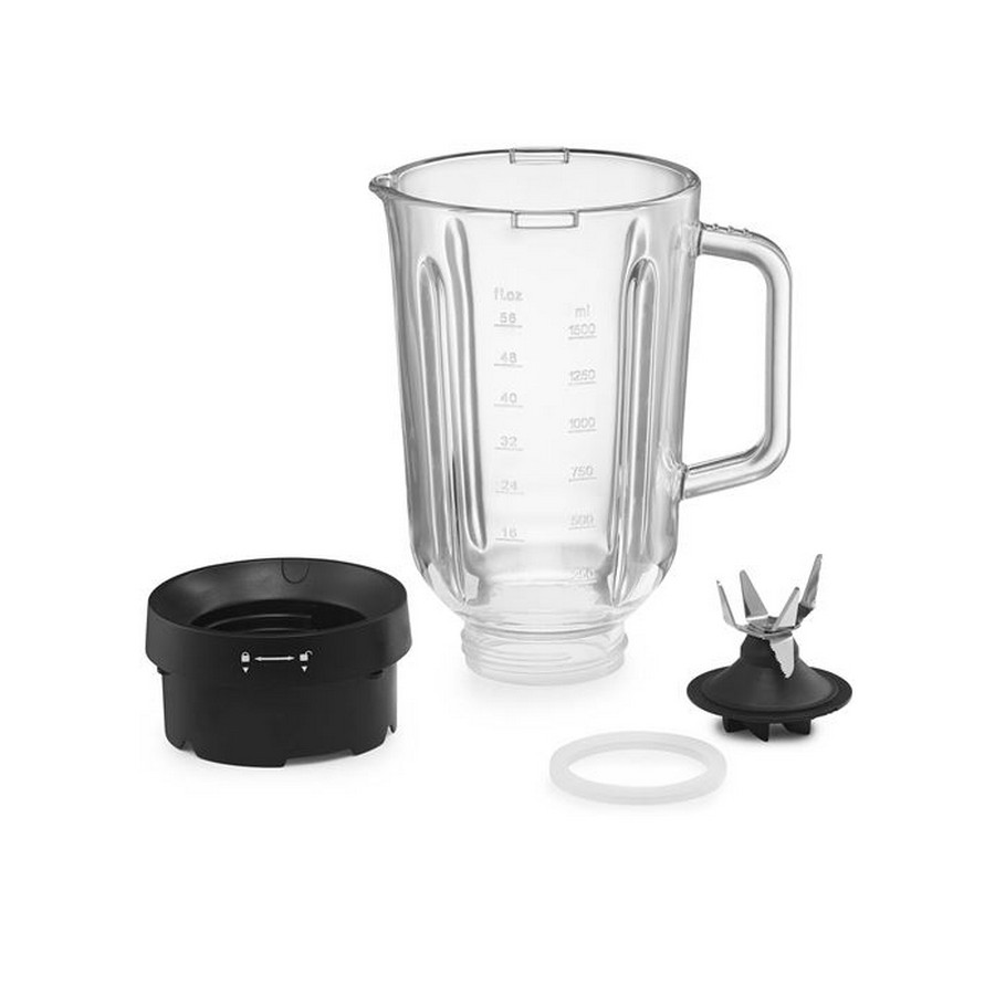 Corps en inox Capacité 2L brut - 1,5L utile Bol en verre thermorésistant (70°C d'écart de température) Molette de réglage de vitesses 3 programmes intégrés: manuel, glace pilée et jus Verrouillage de sécurité du bol et du couvercle Ventouses intégrées sous la base Puissance 1200W