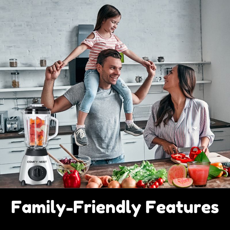 Interrupteur de sécurité intégré – Conçu pour la sécurité de l'utilisateur, cet interrupteur empêche le mixeur de fonctionner si tous les composants ne sont pas bien en place, réduisant ainsi le risque d'accident.