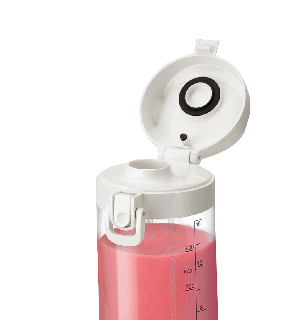 Le blender nomade , sans limite ! Conçu pour une vie active. CARACTERISTIQUES PRODUIT Conçu pour voyager Compact et léger, avec un couvercle pratique, ce petit blender est conçu pour vous accompagner dans tous vos déplacements du quotidien. Chargez et partez Chargée via le cable USB C en seulement 90 minutes pour + de 30 cycles de 30 secondes. Aucun cordon n'est nécessaire lors de l’utilisation. Mélangez , mixez et buvez ! Mélangez vos boissons directement dans la tasse Tritan ™ sans BPA de 475 ml et buvez directement ou bien emportez avec vous lors de vos déplacements. Puissant. Une lame croisée en acier inoxydable pour des mélanges performants et parfaits. Un bouton. Cliquez sur le bouton et obtenez une variété de textures.