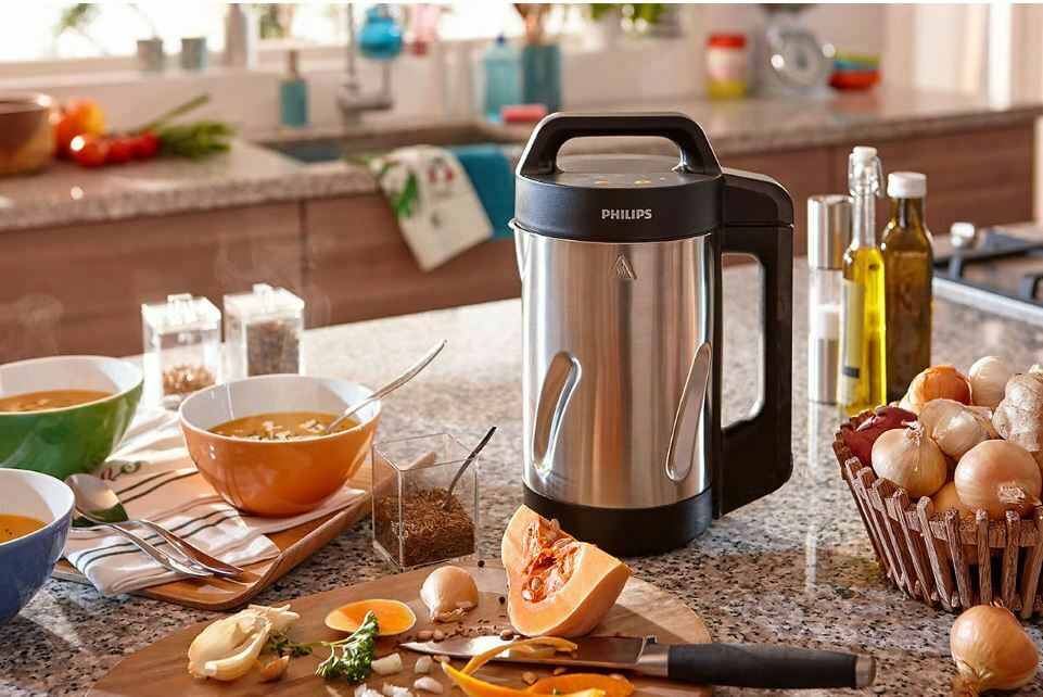 Le Blender pour soupe ""SoupMaker"" de Philips propose 5 programmes, pour une polyvalence inégalée. Ce blender chauffant permet de préparer des veloutés ou des soupes avec morceaux, des compotes et des smoothies. Vous pouvez également l'utiliser comme un blender normal.
