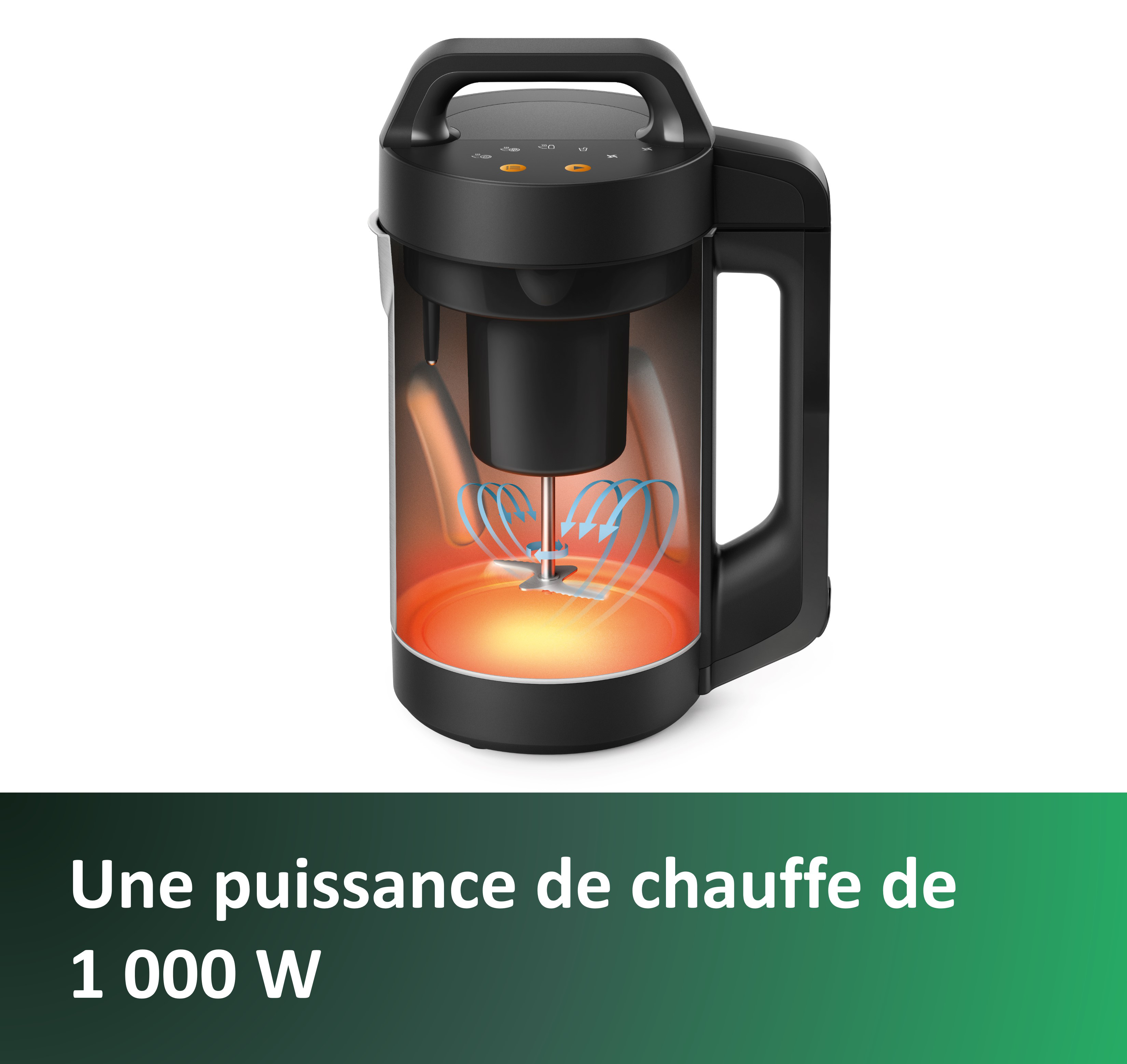 Grâce à une puissance de chauffe de 1 000 W, vos veloutés préférés sont prêts en 18 minutes. Ce blender mixeur offre un mixage chaud ou froid, et son mixage manuel supplémentaire permet de garantir des résultats parfaits.