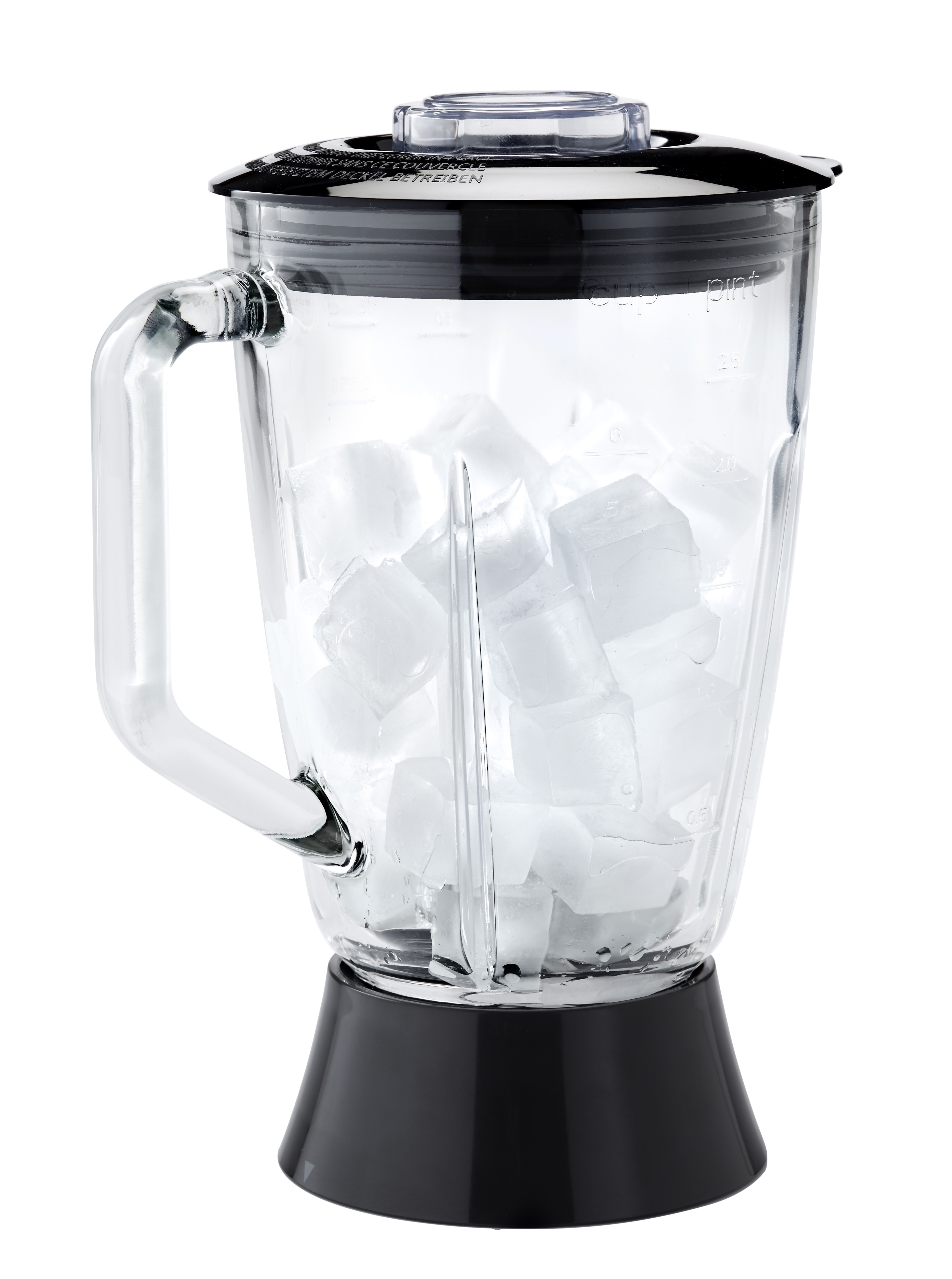 1,5 L 4 vitesses + pulse Antidéparant : 4 ventouses "Capuchon doseur 4 lames inox" Bol en verre