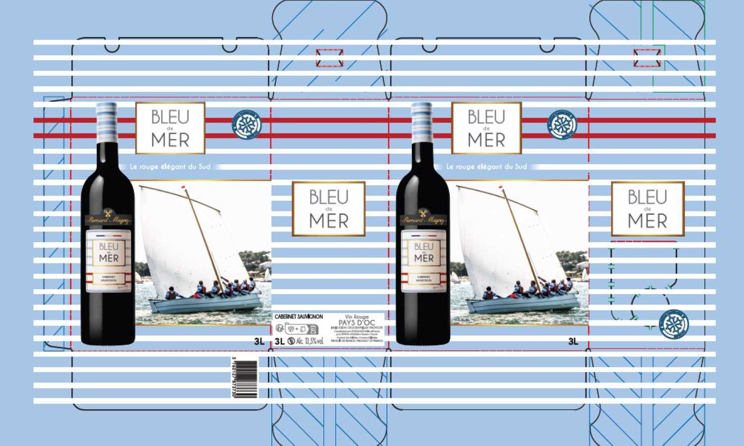 | Libellé | Bleu de Mer - Bernard Magrez - Pays d'Oc IGP - Rouge - Bag in Box - 3 L |