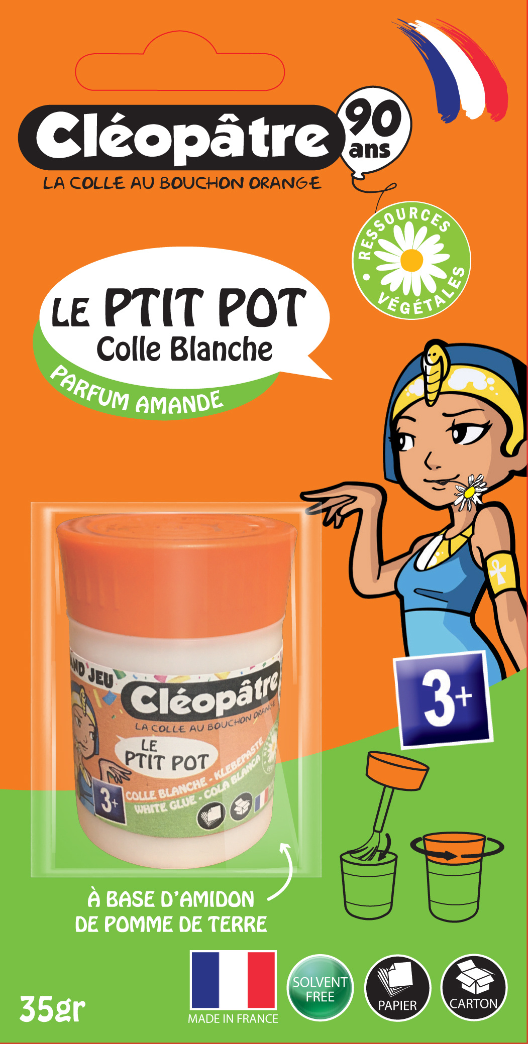 Libellé blister p'tit pot de colle cléopâtre édition 90 ans