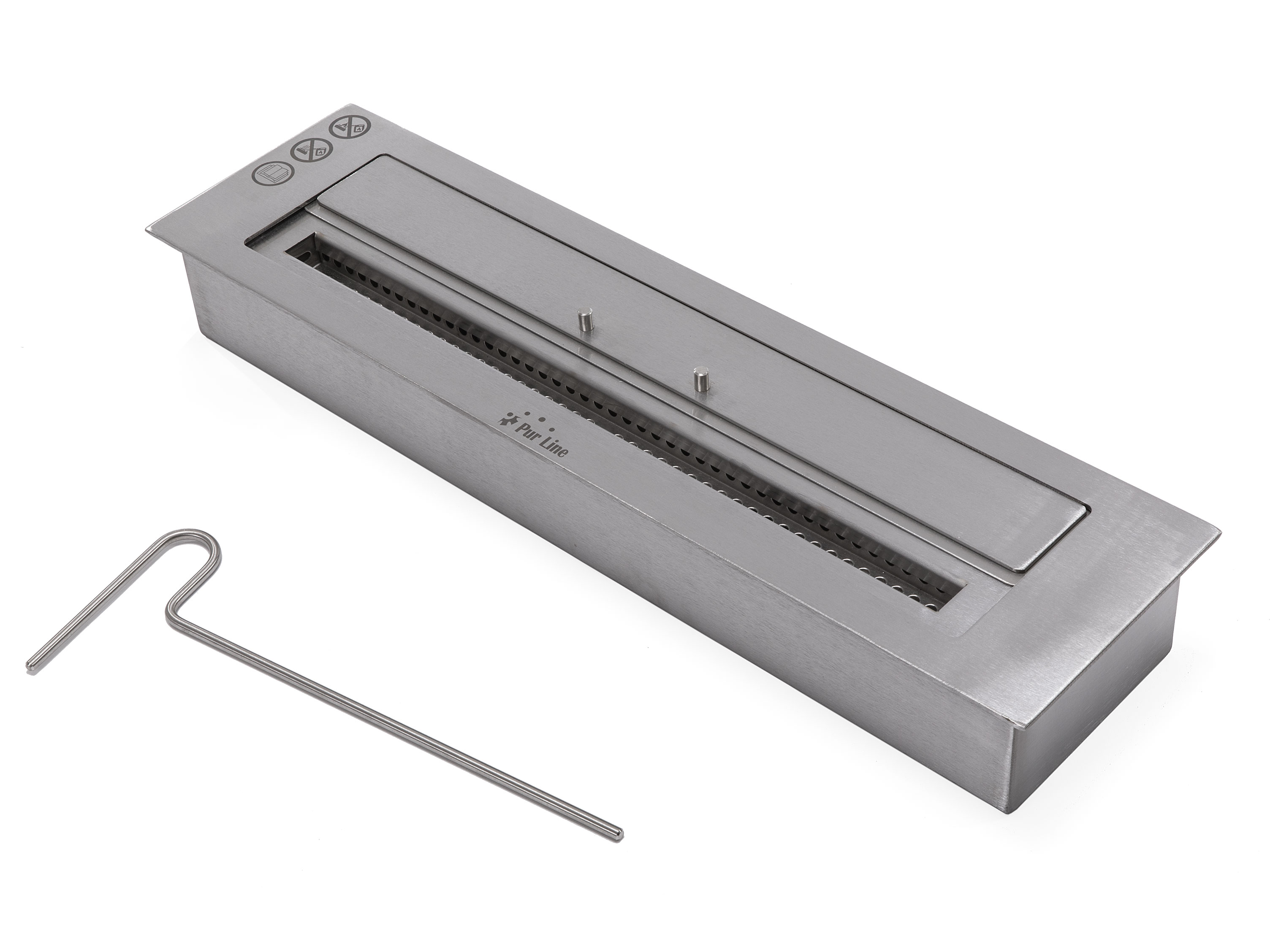 Le F96 est un petit bloc de combustion, fabriqué avec une double couche d'acier inoxydable et de fibre céramique à l'intérieur pour garantir un feu sûr. Avec un réservoir plein, il a une autonomie de 6 heures environ. En outre, l'ouverture de son couvercle vous permet de régler l'intensité des flammes, de sorte que vous pouvez personnaliser l'atmosphère selon vos préférences, et lorsque vous voulez arrêter le feu, vous pouvez utiliser son outil d'extinction.
