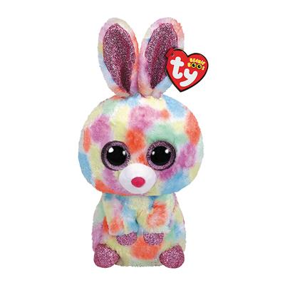 Adorable peluche lapin multicouleurs, en format Medium environs 25cm.