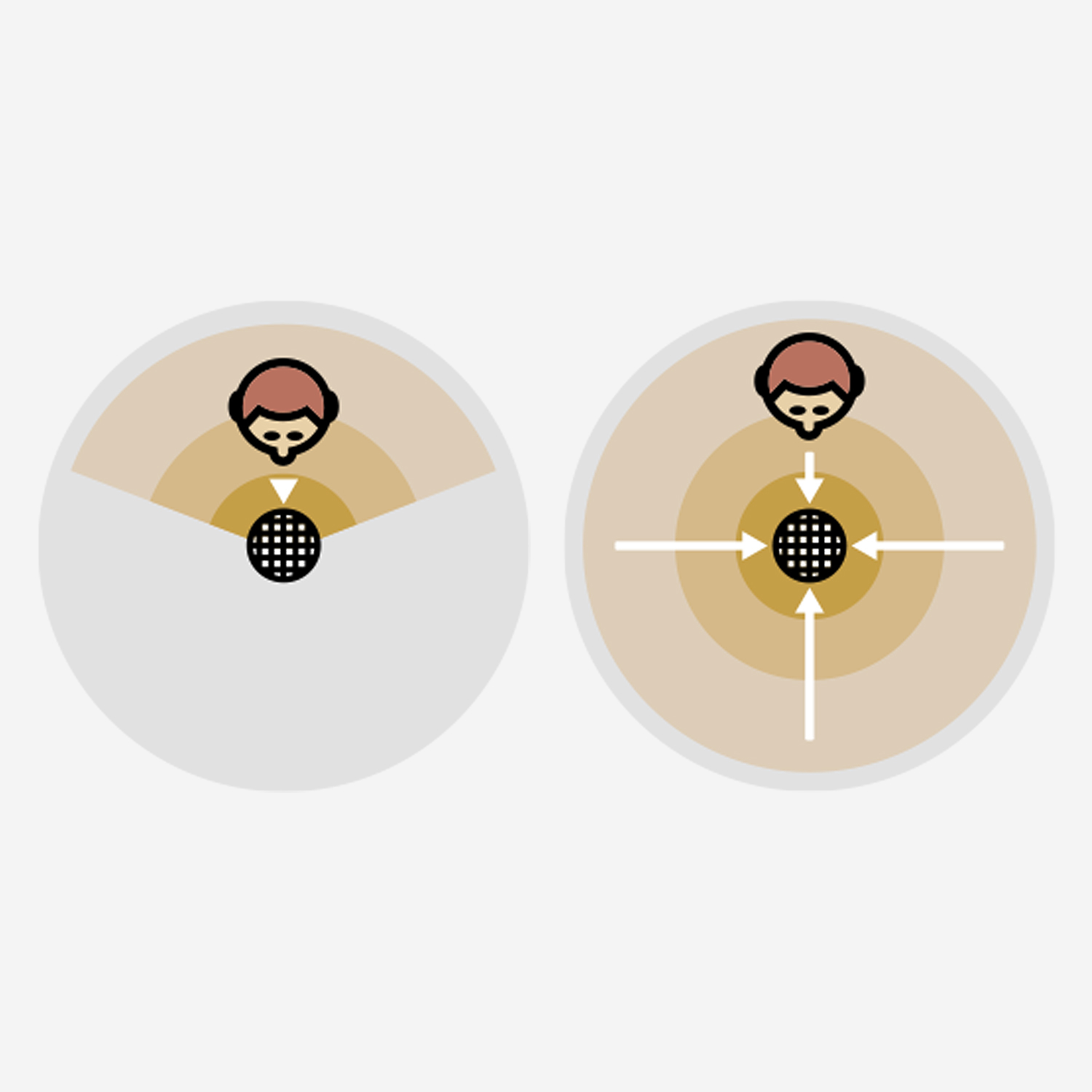 Ce réglage capte les sons venant de l'avant, l'idéal pour enregistrer un son unidirectionnel comme celui d'instruments solo et de podcasts.
