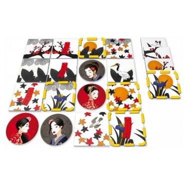 à partir de 7 ans moins de 30 min 2 joueur(s) Okiya est un jeu malin et rapide pour 2 joueurs de Bruno Cathala, qui symbolise de façon poétique la lutte d'influence entre deux Okiyas (maisons de Geishas) pour s'attirer les faveurs de l'empereur.