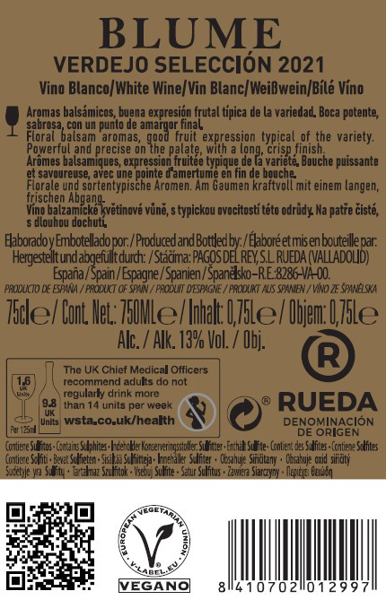 | Libellé | Blume - Verdejo Selección, 2021 - D.O. Rueda, Espagne - Blanc - 75 cl - étiquette abîmée |