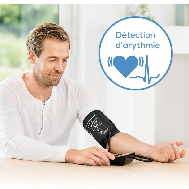 Grâce à son indicateur de risque avec échelle de couleur, ce tensiomètre permet de détecter les troubles du rythme cardiaque et offre une fonction de détection d'arythmie.