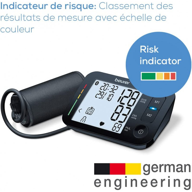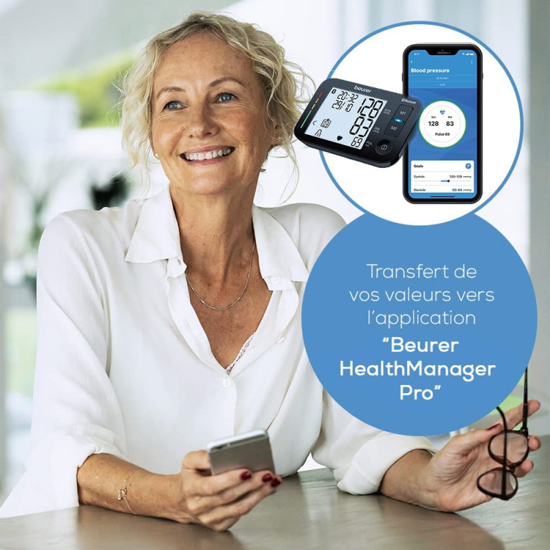 Le BM 54 se distingue également par sa mise en réseau innovante entre un smartphone et le tensiomètre via la technologie Bluetooth® low energy, ce qui permet de suivre facilement les mesures et d'en garder une trace sur son téléphone portable.