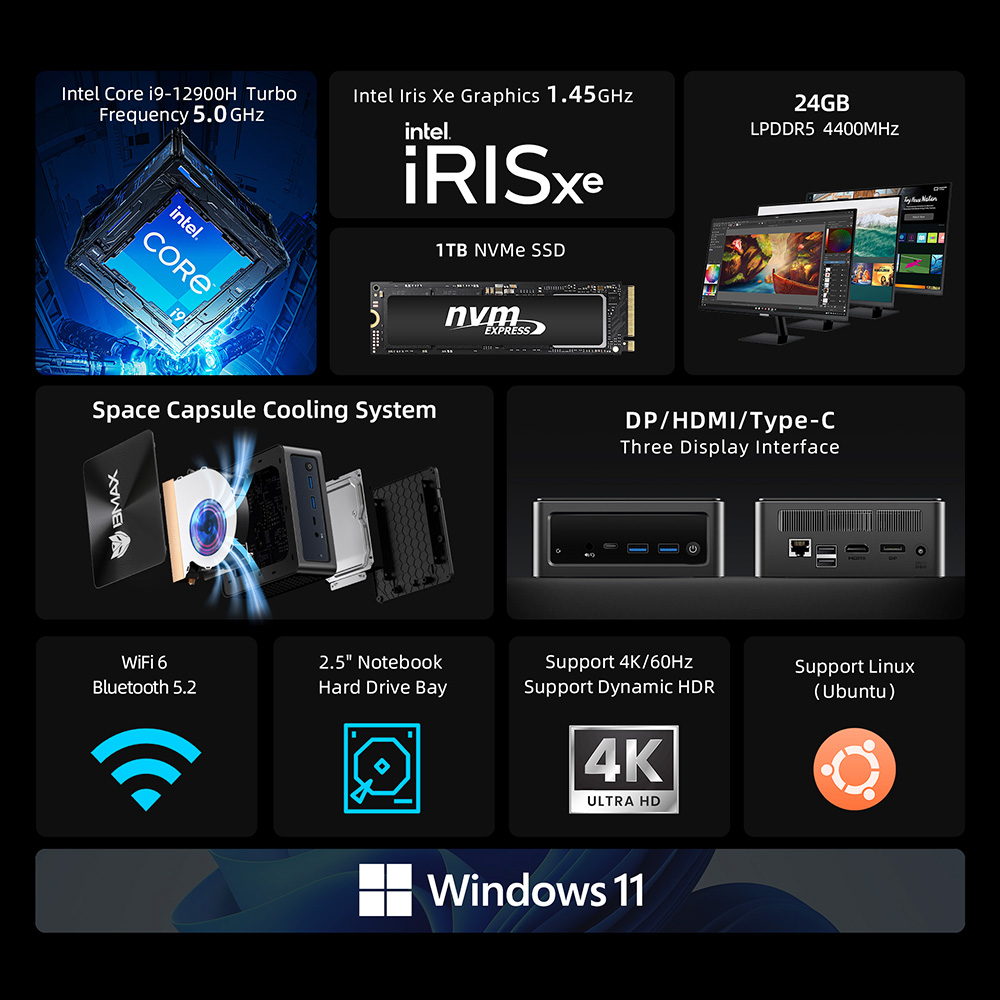 BMAX B9 Power Mini PC Intel Core i9-12900H 24GB/1TB