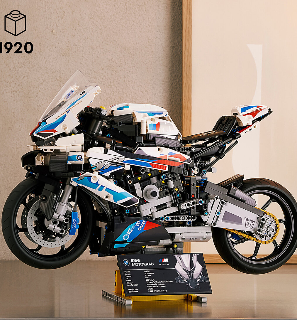 Faites vibrer le moteur de votre créativité et savourez un projet gratifiant en construisant une réplique détaillée d’une BMW M 1000 RR à l’échelle 1:5.Développées dans les courses sportives et perfectionnées pour la route, les motos BMW ont conquis le cœur des fans de sport automobile. Désormais, vous pouvez profiter d'un assemblage minutieux de la moto LEGO 42130 Technic BMW M 1000 RR avec ce modèle à construire pour adultes. Son échelle 1:5 est une première pour l'univers LEGO Technic. Ce modèle impressionnant de moto ressemble et se déplace comme la vraie moto avec des caractéristiques authentiques. Examinez la boîte de vitesses fonctionnelle à 3 rapports (comprenant la vitesse neutre), la direction, la suspension avant et arrière, la transmission par chaîne et le moteur en ligne à 4 pistons. Avec la marque emblématique BMW et 2 supports d'exposition, ce modèle de moto est très élégant et constitue une excellente idée de cadeau de moto pour tous ceux qui aiment le modélisme de véhicules.La BMW M 1000 RR LEGO Technic fait partie d'une collection de jeux LEGO pour adultes. Rendant hommage à certains des véhicules les plus appréciés au monde, ces jeux de construction pour adultes offrent un aperçu de l'ingénierie combiné à un projet de construction relaxant.Échelle 1:5 - Ce modèle premium (les dimensions ne comprennent pas le support de présentation) mesure plus de 27 cm de hauteur, 45,5 cm de long et 17 cm de large.Ce kit de construction de modèles de motos est le résultat d'un partenariat entre BMW et l'équipe de conception LEGO Technic Nombre de pièces : 1921 piècesÂge : 18+