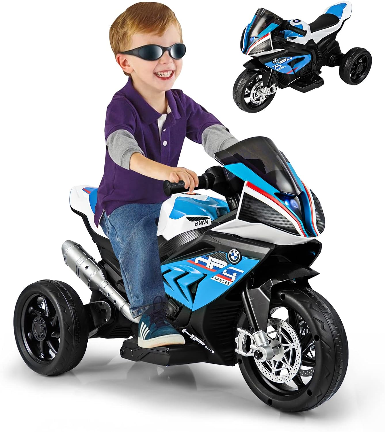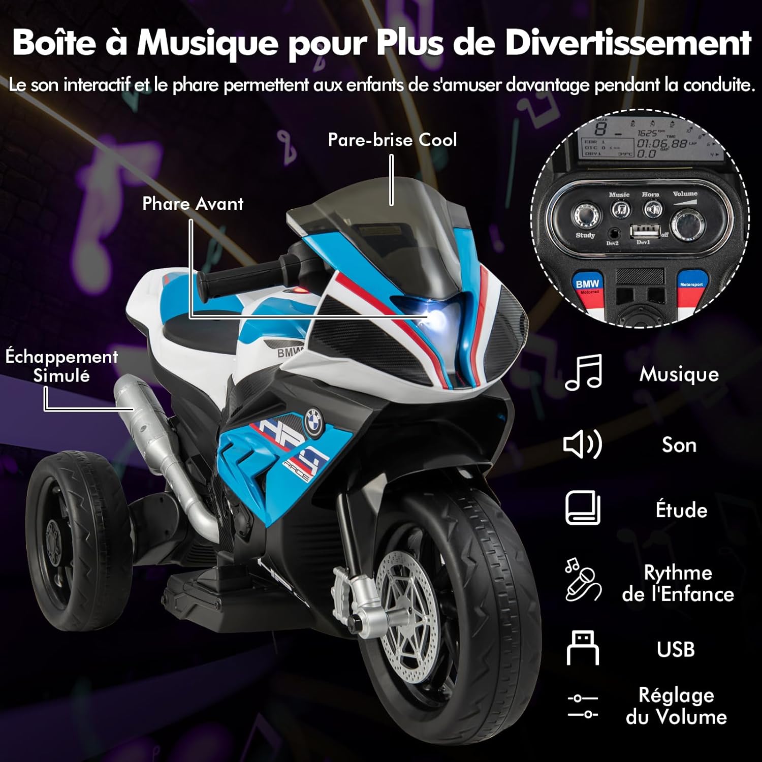 Bmw moto electrique enfants 6v 2 roues d’entraînement,voiture porteur electrique enfants avec phares,bleu