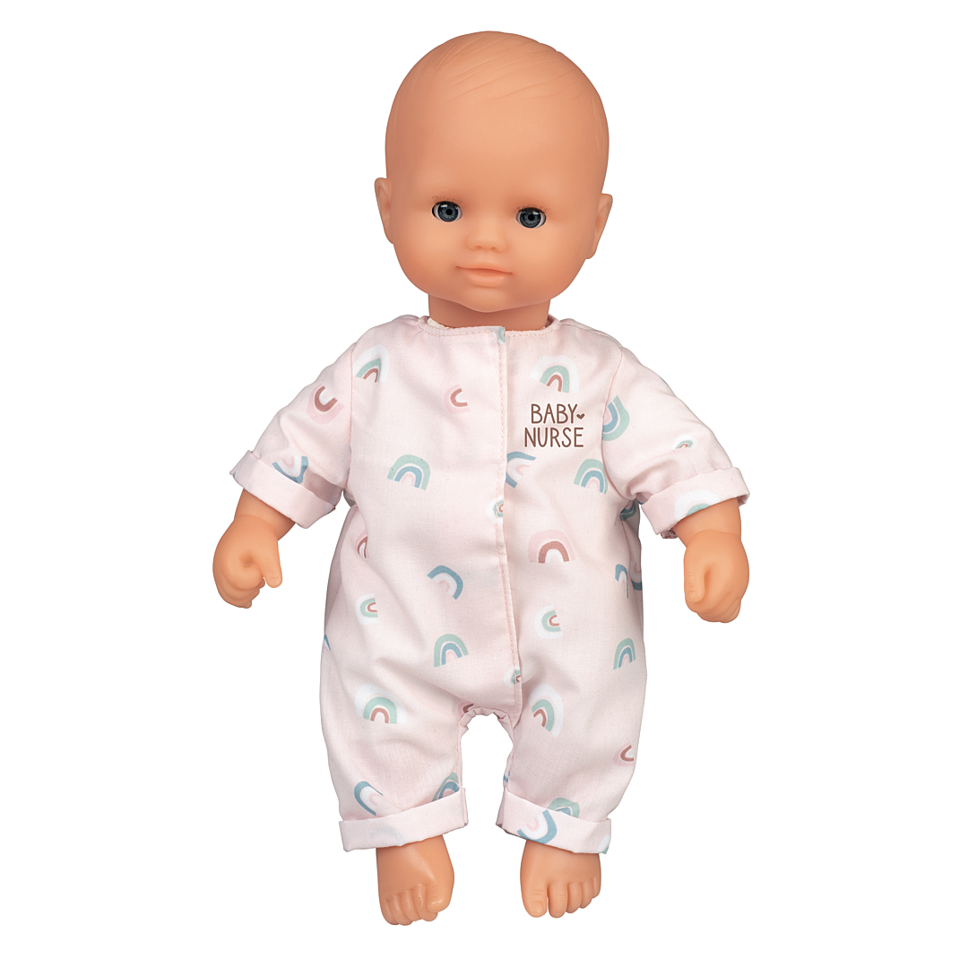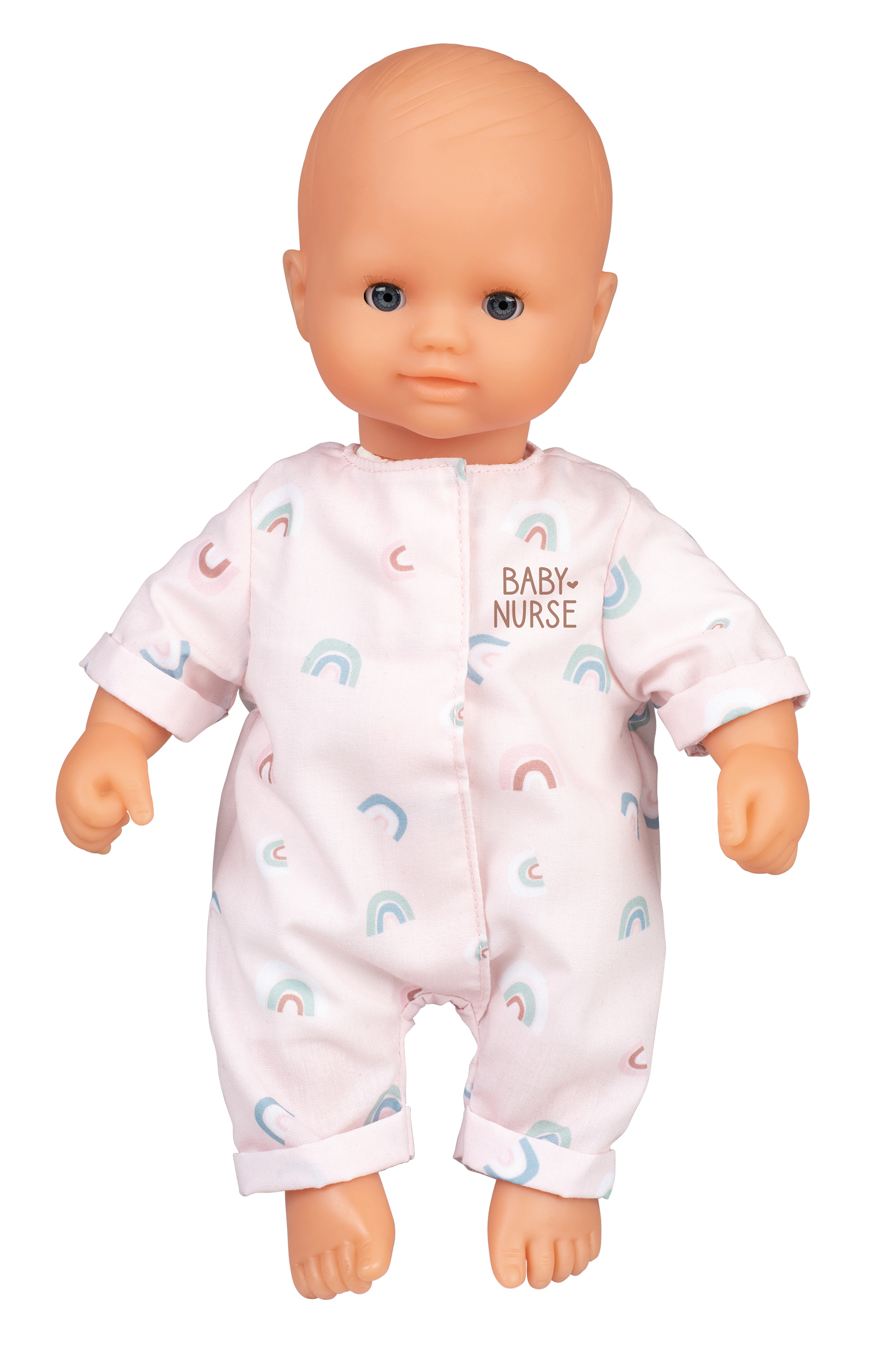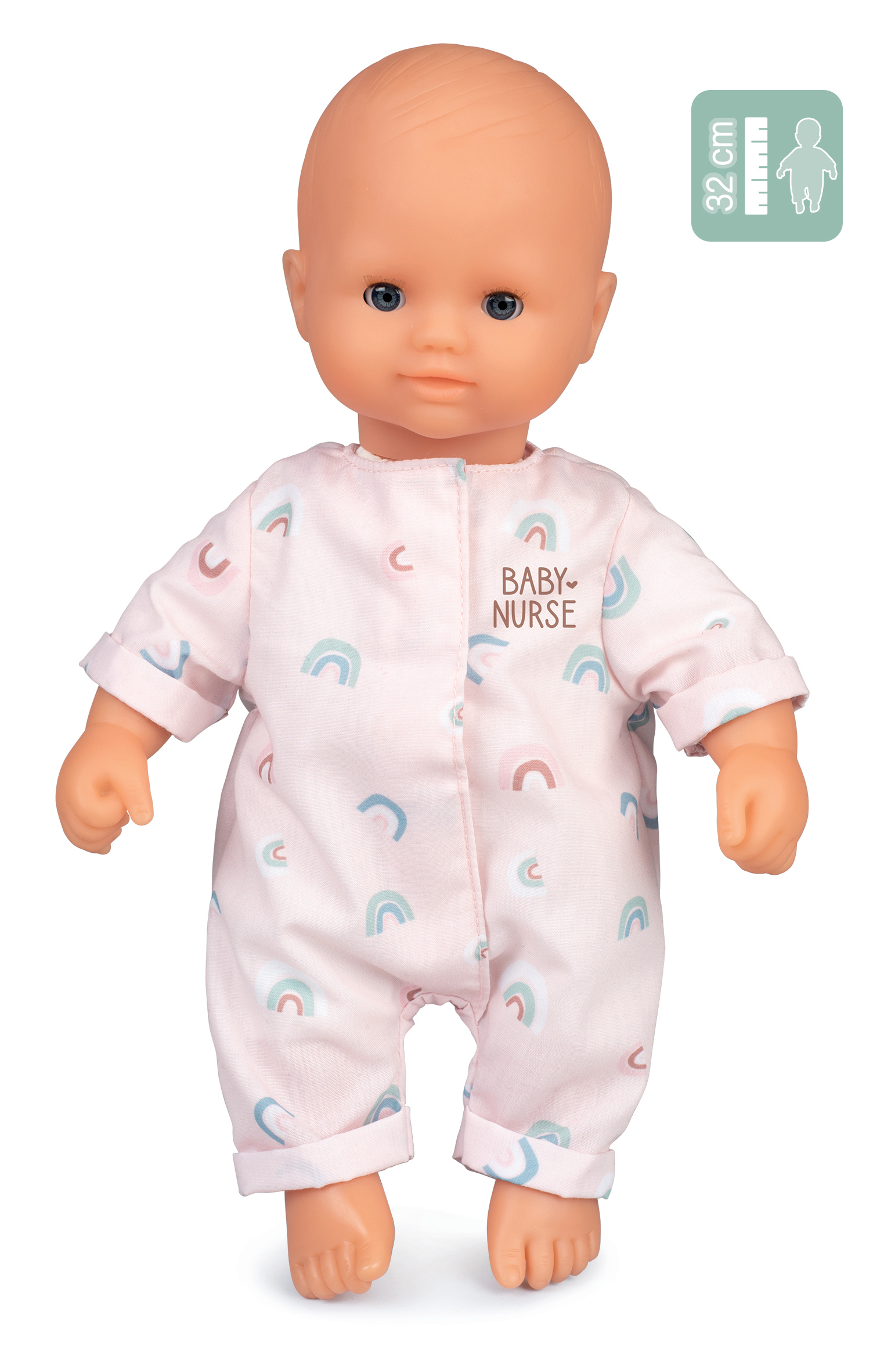 Poupon de 32cm avec un corps souple dans une tenue aux couleurs de la gamme Baby Nurse. Yeux dormeurs. A partir de 2 ans.