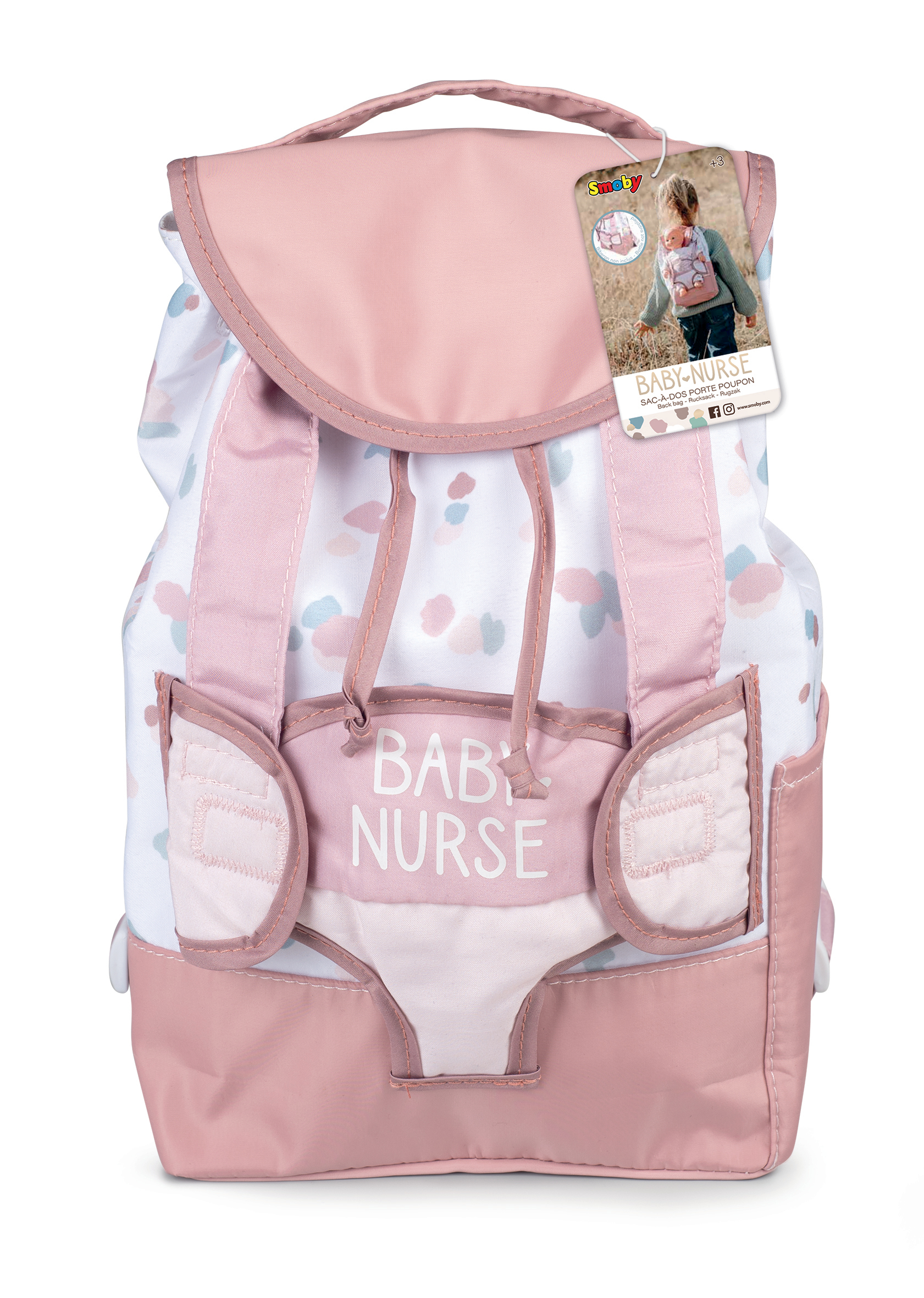 Plus produit Sac à dos avec porte bébé et porte biberon intégrés. Sangles réglables, liens coulissants pour resserrer l\'ouverture du sac et fermeture facile grâce au velcro. Poupon non inclus.