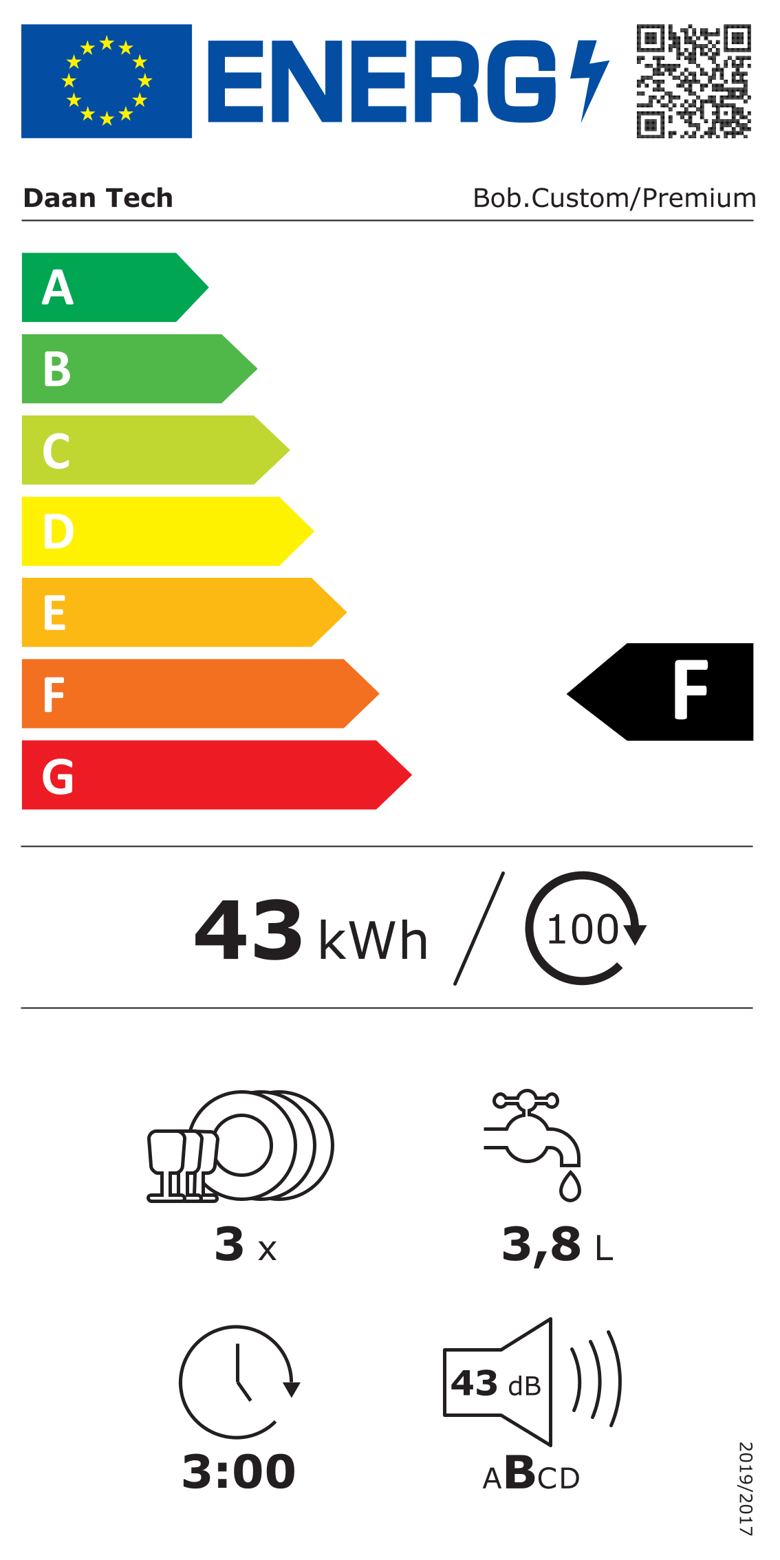 Consommation d’énergie pour 100 cycles (kwh) 43