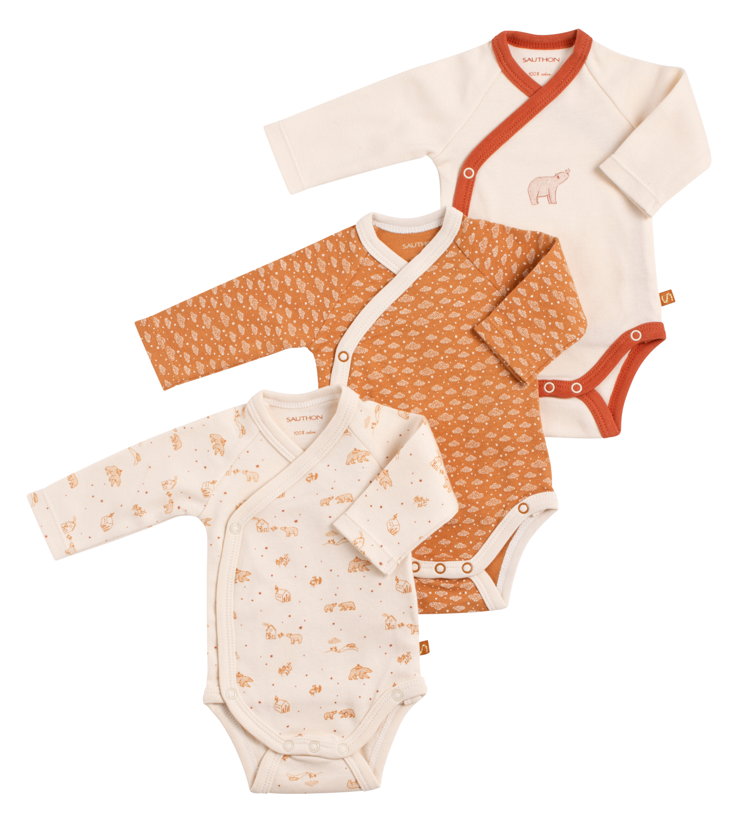 Les bodies Orsino sont vendus par lot de 3 pour permettre aux parents de changer bébé plusieurs fois dans la journée. Leur forme croisée est très pratique et recommandée jusqu'au trois mois de l'enfant afin de faciliter l'habillage et le déshabillage. Les motifs de la collection Orsino, aux traits fins, tendres et délicats, viennent joliment décorer les bodies de bébé. Certifiée Oeko-tex Standard 100, ce label garantit l'absence de substance nocive ou irritante pour la peau.