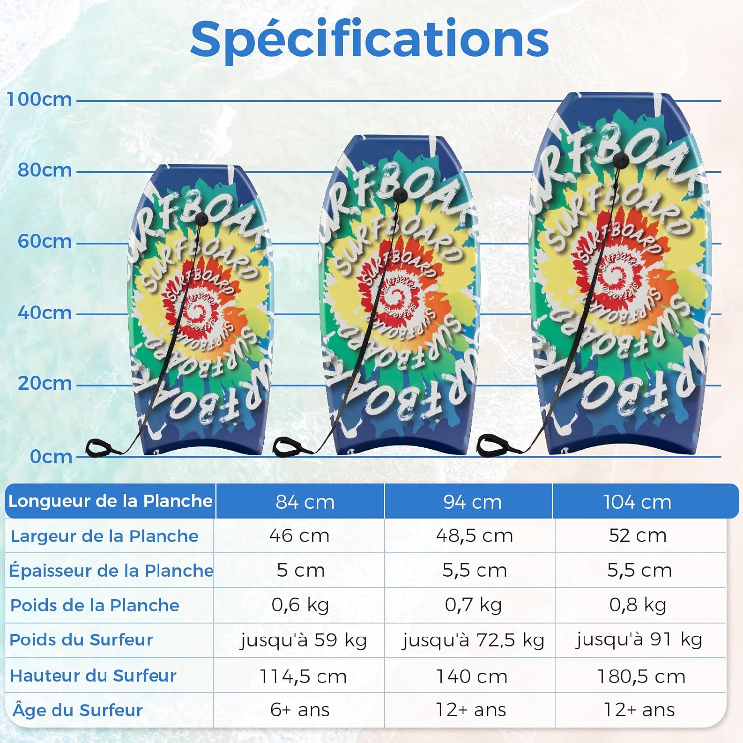 - Choix Adapté aux Familles : Convient aux enfants, aux adolescents et aux adultes, notre bodyboard est parfait pour les sorties en famille à la plage, les visites à la piscine ou les vacances au parc aquatique, offrant une expérience polyvalente et agréable pour les débutants et les surfeurs chevronnés.