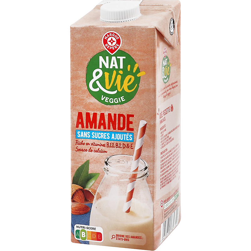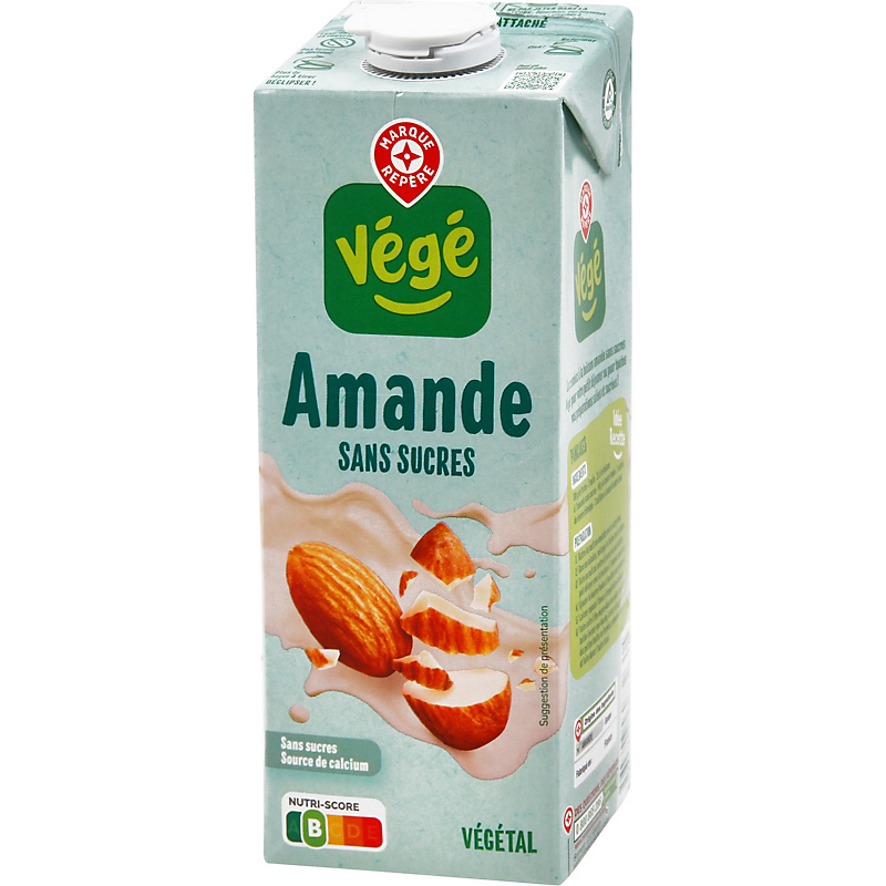 Boisson à base d'amande, sans sucres, source de calcium et stérilisée UHT VEGE