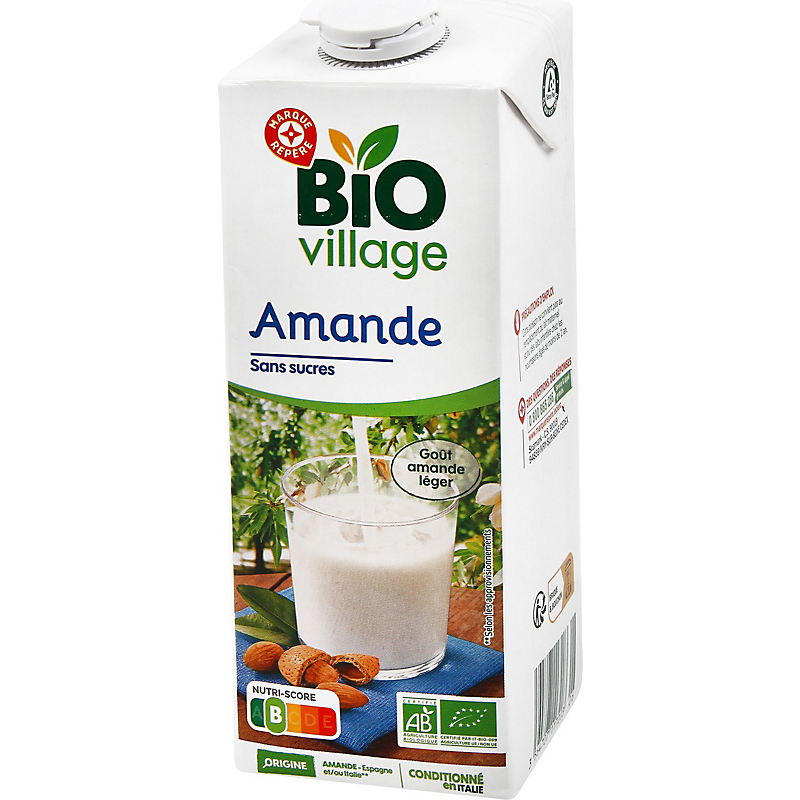 BOISSON À BASE D'AMANDE, SANS SUCRES, STÉRILISÉE UHT - PRODUIT ISSU DE L'AGRICULTURE BIOLOGIQUE BIO VILLAGE