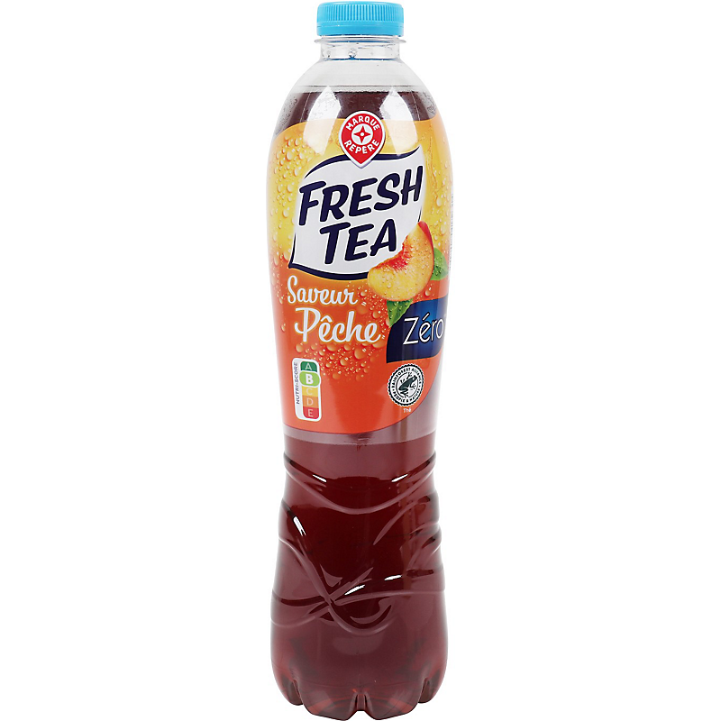 Ingrédients : Eau ; jus de pêche à base de concentré 0,6 % ; acidifiant : acide citrique ; extraits de thé noir *** 0,12 % ; arôme naturel ; édulcorants : acésulfame-k, sucralose ; antioxydant : acide ascorbique.