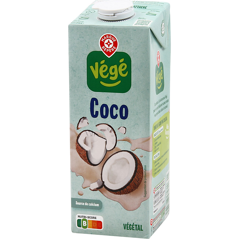 Boisson à base de noix de coco et de riz, aromatisée, source de calcium, stérilisée UHT VEGE