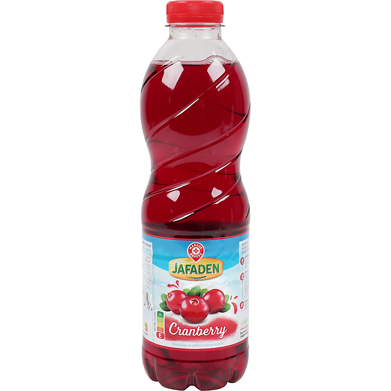 Boisson au jus de cranberry à base de concentré. Teneur en fruits : 27 %. JAFADEN