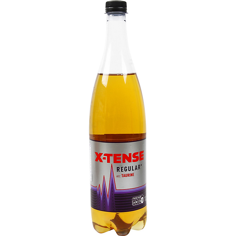 BOISSON GAZÉIFIÉE AROMATISÉE, À BASE DE TAURINE ET CAFÉINE, AVEC SUCRE ET ÉDULCORANT. SOURCE DE VITAMINES B3, B5, B2, B6, B12. X-TENSE