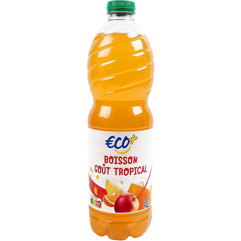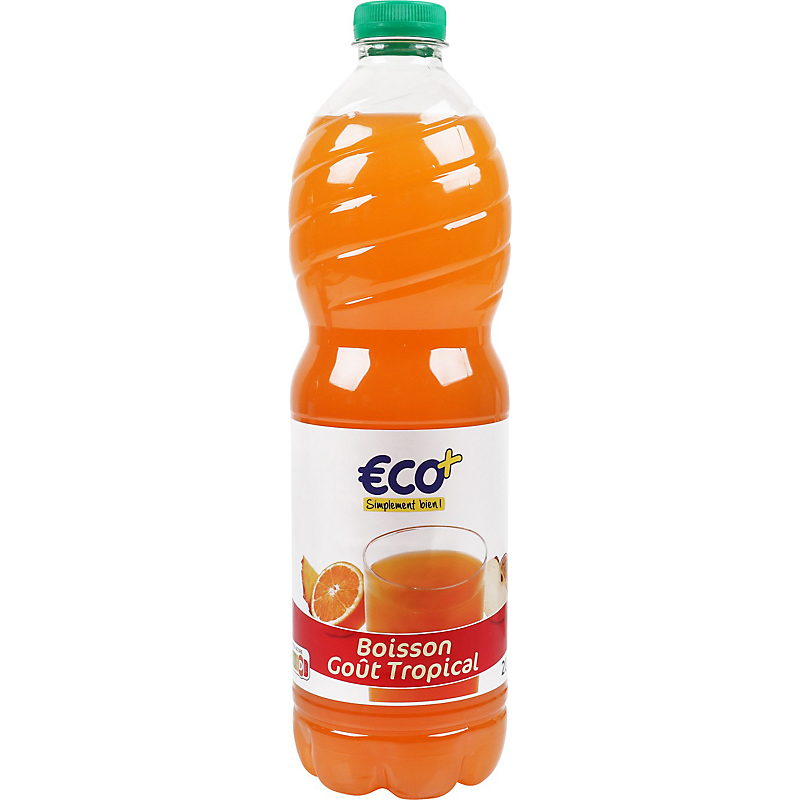 Boisson aux jus de fruits à base de concentrés, avec sucre et édulcorant, goût tropical ECO +