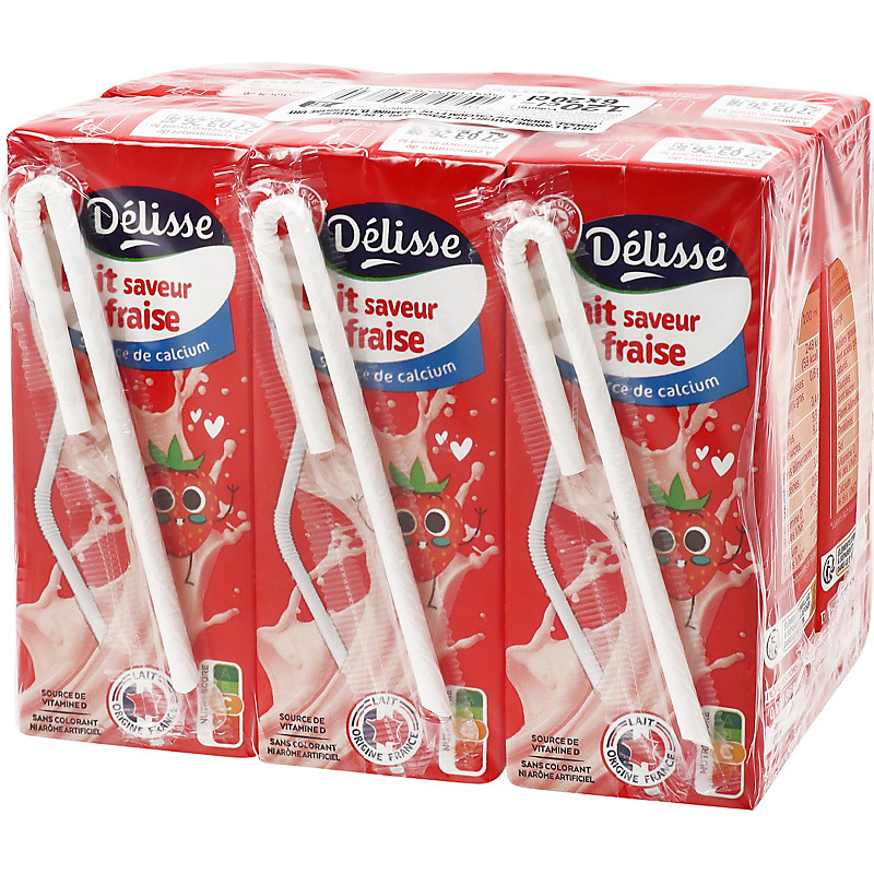 Lait à l'arôme naturel de fraise, à 6g/L de matière grasse, source de calcium et de vitamine D, stérilisé UHT DELISSE