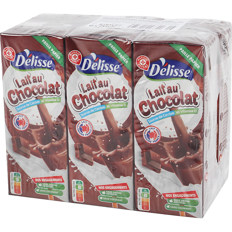Lait au chocolat, à 9g/L de matières grasses, sans lactose (<0,1g / 100mL), source de calcium et de vitamine D, stérilisé UHT DELISSE