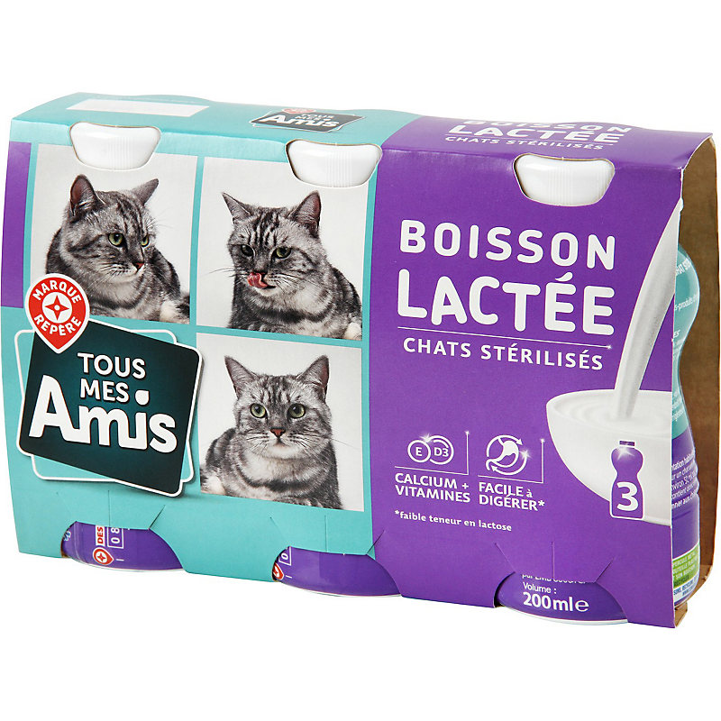 boisson lactée pour chat stérélisé x 3 - 600 ml - TOUS MES AMIS