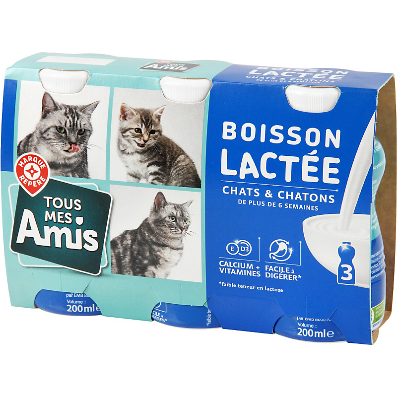 boisson lactée pour chats et chatons x 3 - 600 ml - TOUS MES AMIS