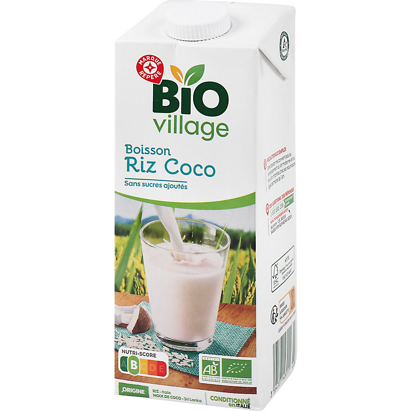 BOISSON A BASE DE RIZ ET DE PÂTE DE NOIX DE COCO, aromatisée, SANS SUCRES AJOUTES, STERILISEE UHT - PRODUIT ISSU DE L'AGRICULTURE BIOLOGIQUE BIO VILLAGE