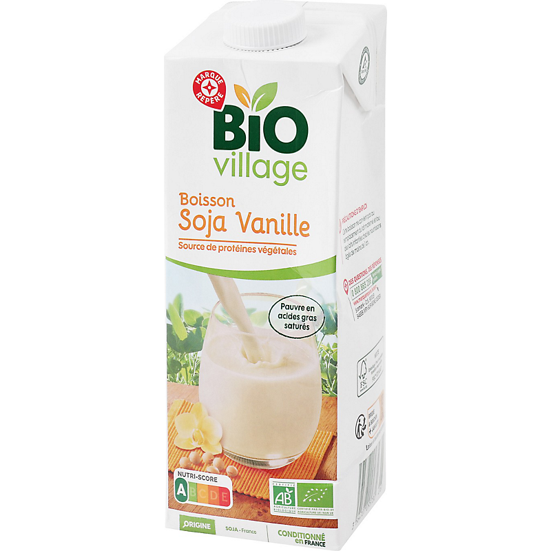 BOISSON À BASE DE SOJA À LA VANILLE, STÉRILISÉE UHT - PRODUIT ISSU DE L’AGRICULTURE BIOLOGIQUE BIO VILLAGE