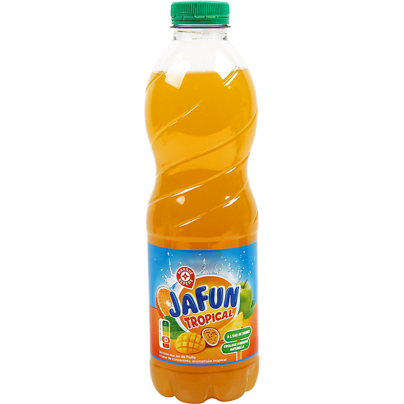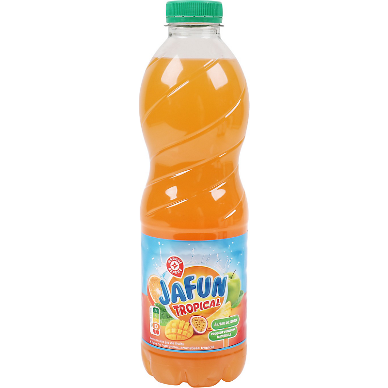 Boisson aux jus de fruits à base de concentrés, saveur tropicale. Teneur en fruits : 12%. JAFUN