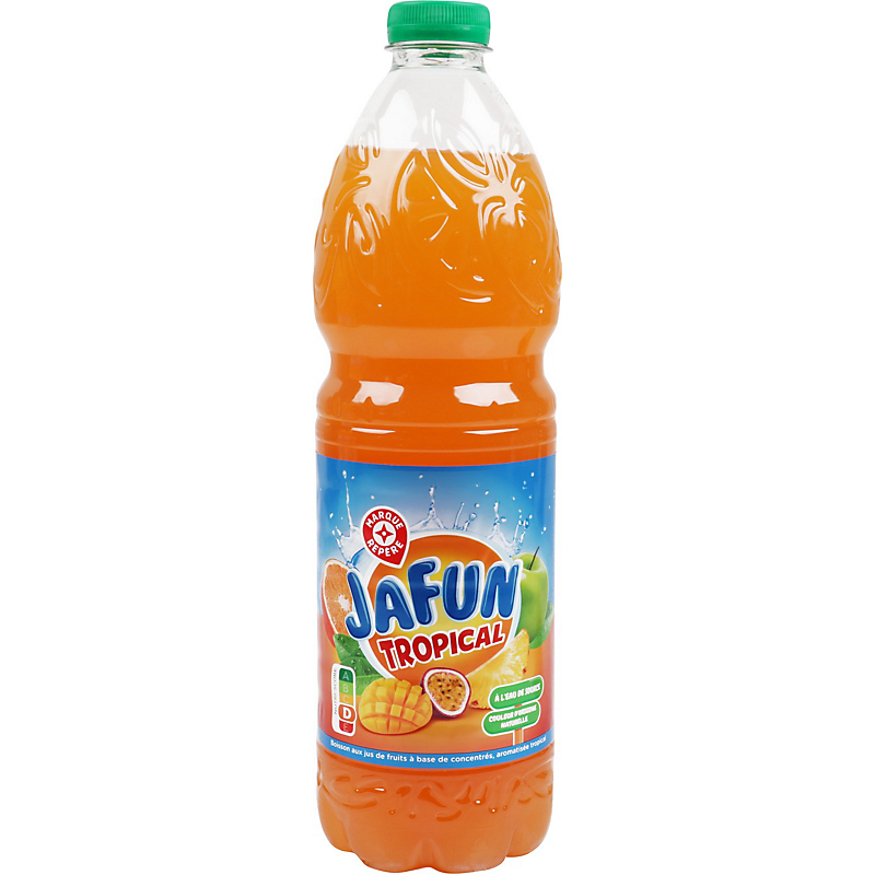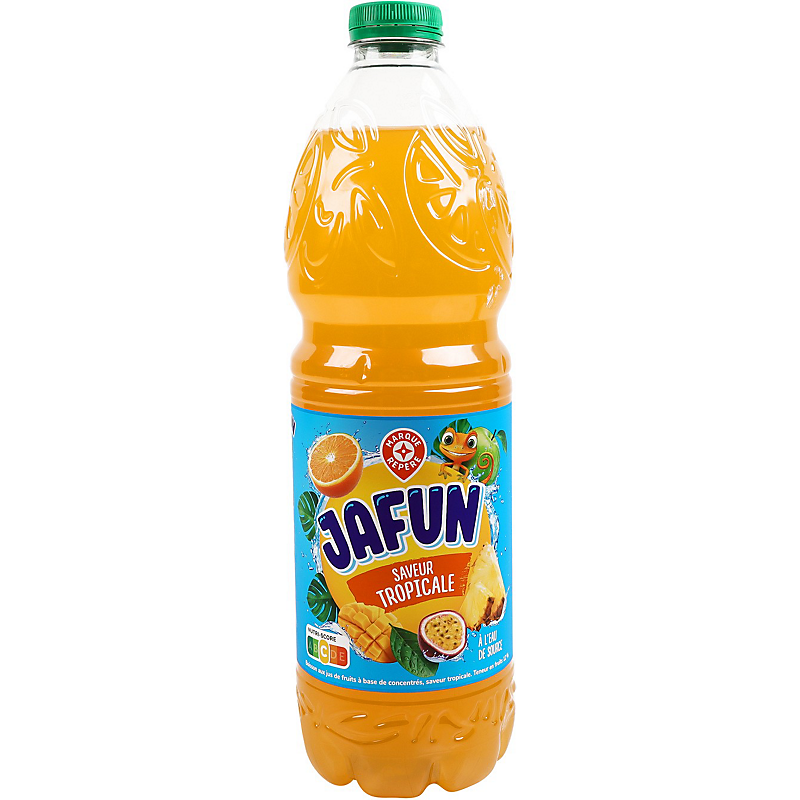 Boisson aux jus de fruits à base de concentrés, saveur tropicale. Teneur en fruits : 12 %. JAFUN