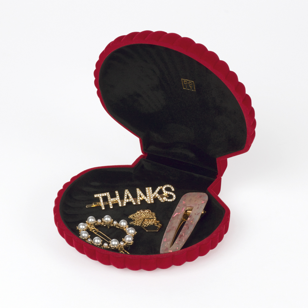 Une pointe de fantaisie pour votre déco ! Cette boîte en forme de coquillage cachera vos plus beaux bijoux dans son écrin velouté. Grâce à sa silhouette originale, elle deviendra un véritable accessoire de décor... Dimensions : 12.6 x 12.8 x 5 cm Matières : plastique et feutrine