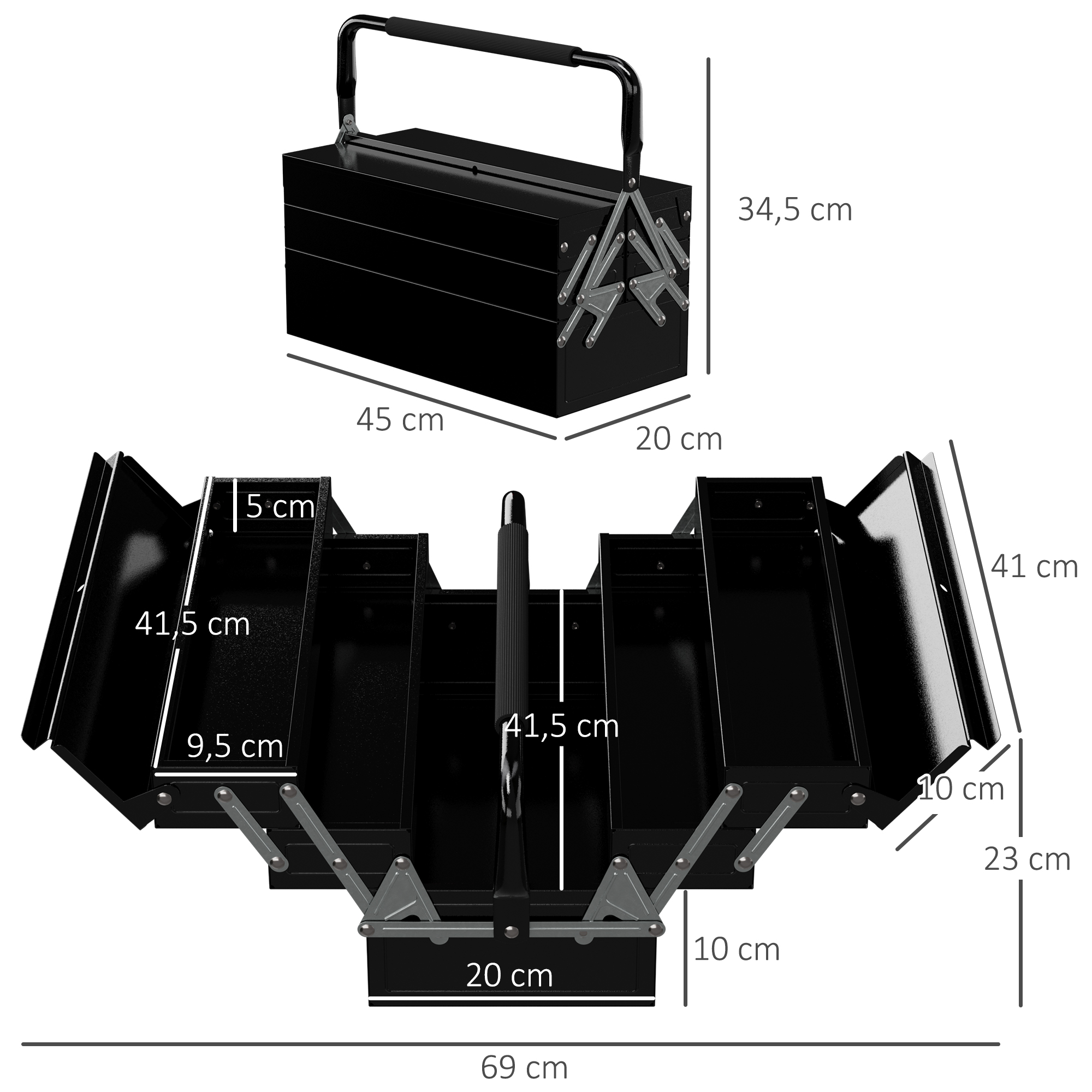Libellé Boite à outils métallique - coffret à outils - caisse à outils 3 niveaux 5 plateaux rétractables - tôle acier noir