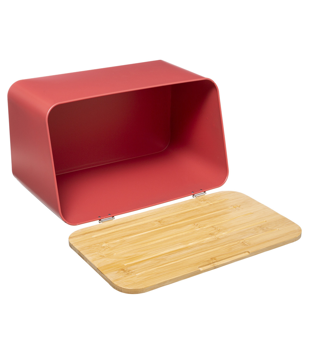 Boite à Pain avec Planche à Découper intégrée en Bambou et métal Rose nacarat --